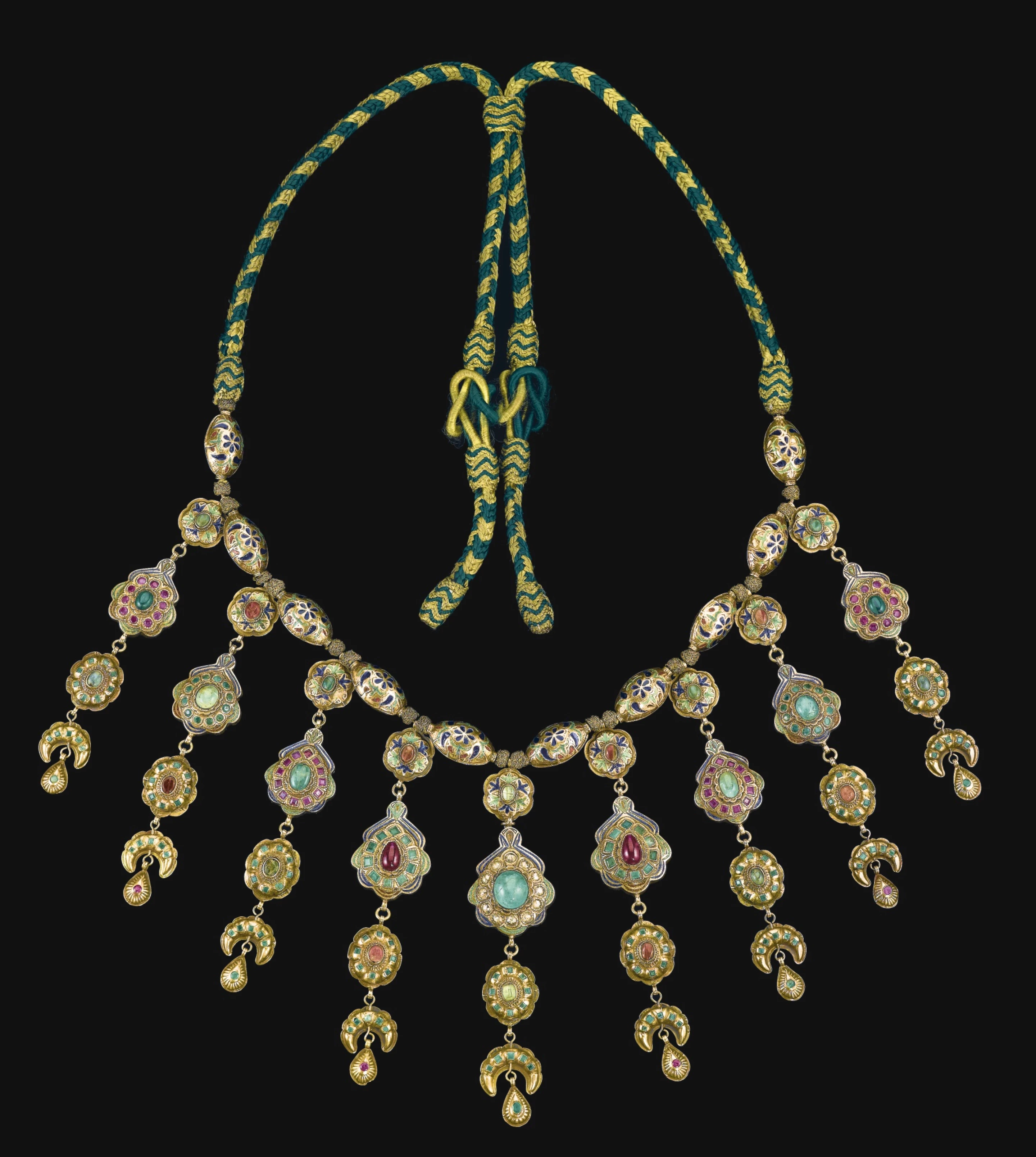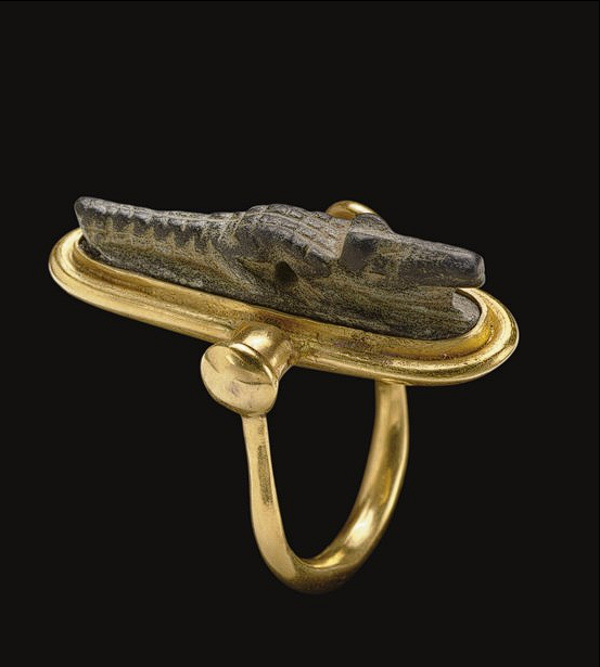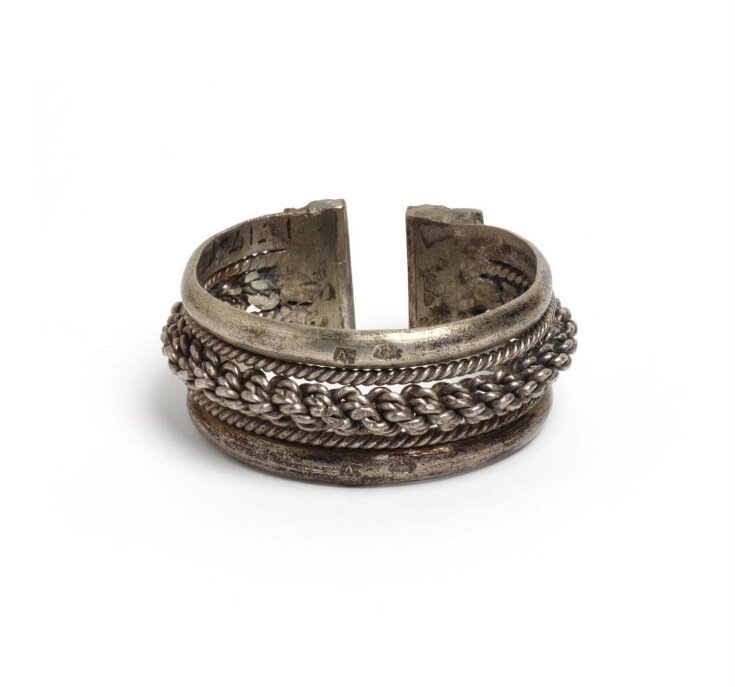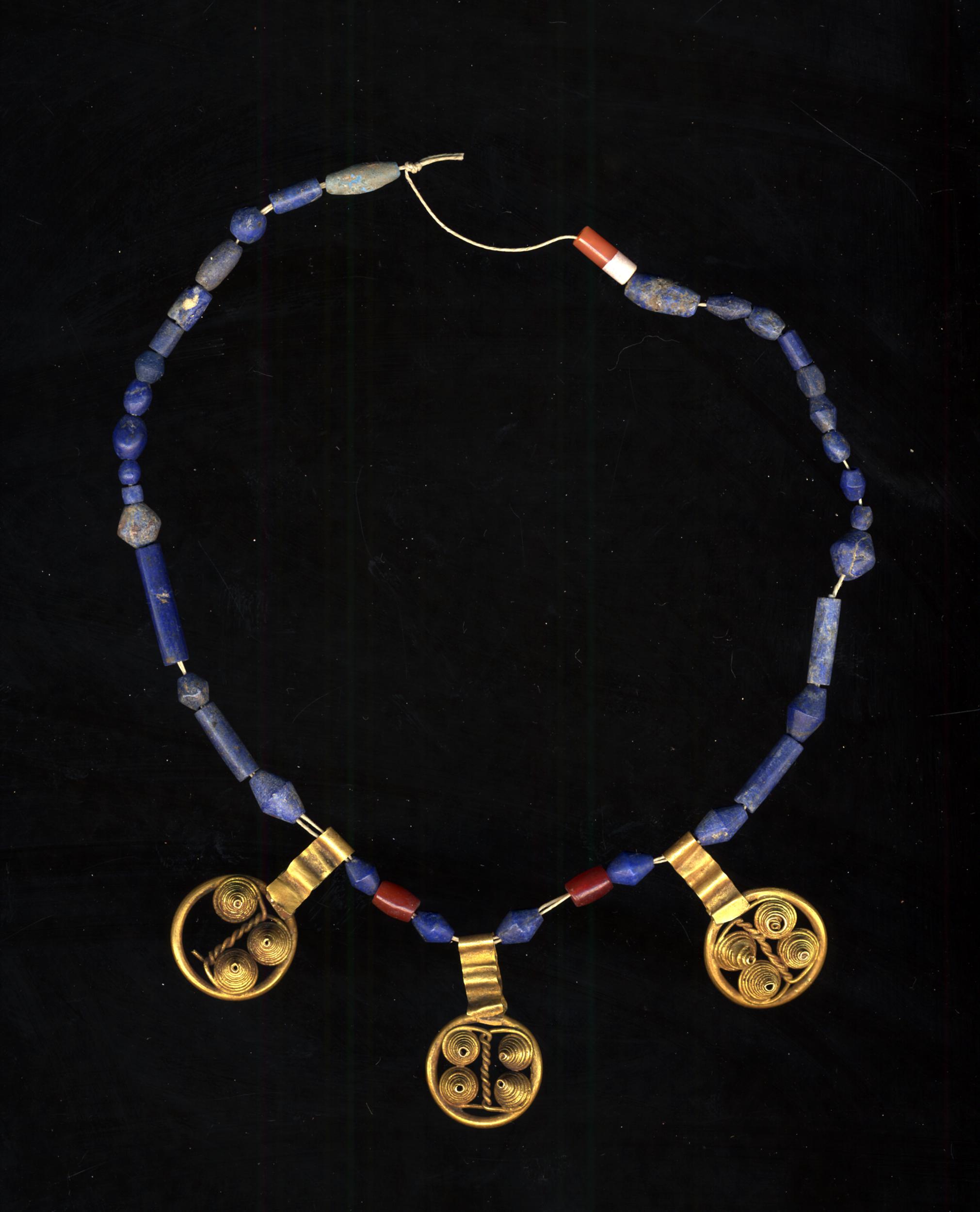 Torque Collier de chasseur de têtes constitué d'un torque en bronze orné de huit pendentifs gravés d'une spirale et de trois têtes trophées.