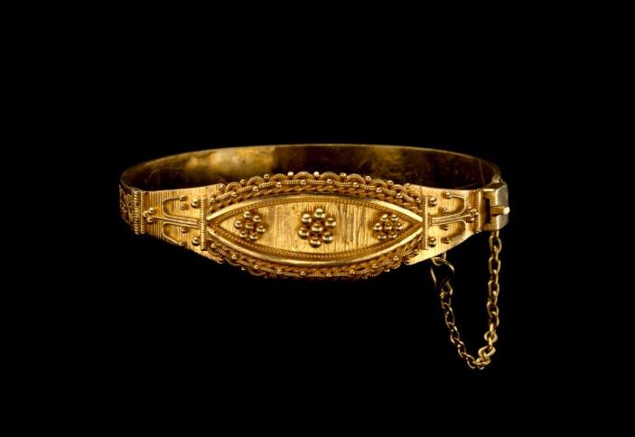 Bracelet ajustable à perles dorées.
